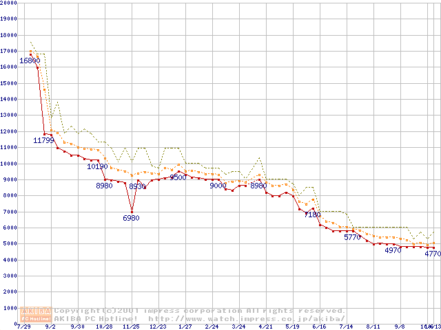 Celeron 633MHz FC-PGA リテールパッケージの価格推移