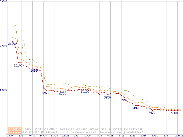 Celeron 700MHz FC-PGA リテールパッケージの価格推移