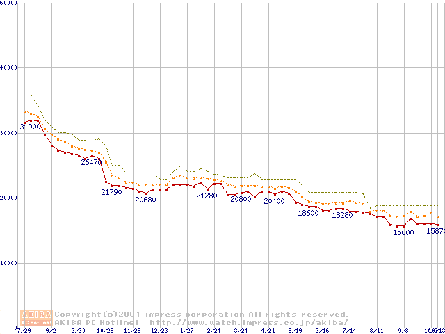 Pentium III 800EBMHz FC-PGA リテールパッケージの価格推移