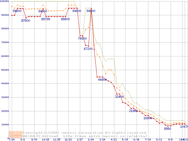 PC800 DRDRAM RIMMの最安値推移