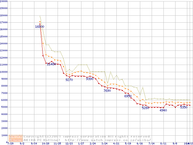 Socket A (Spitfire,PGA,FSB 200MHz,L2 64KB)の最安値推移
