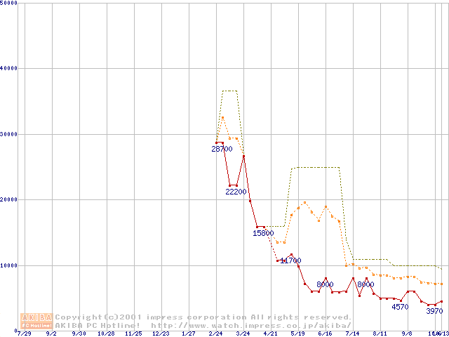 PC2100(DDR266) DDR SDRAM DIMM ECC対応の最安値推移