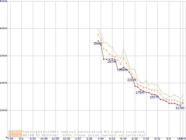 Athlon 1.33GHz(FSB266) (Thunderbird) バルクの価格推移