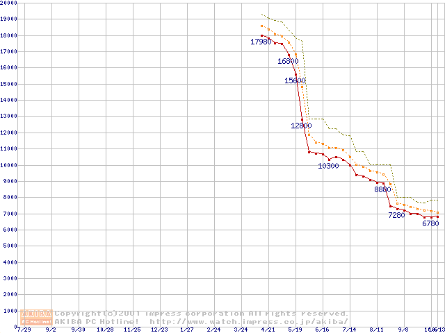 Celeron 850MHz FC-PGA リテールパッケージの価格推移
