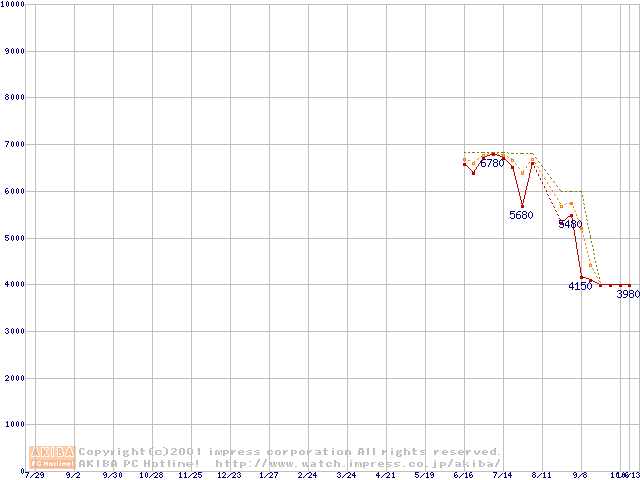 Socket 370 (PGA,FSB 100MHz,L2 64KB)の最安値推移