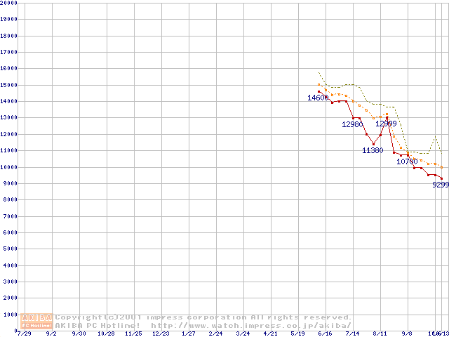 Duron 950MHz リテールパッケージの価格推移