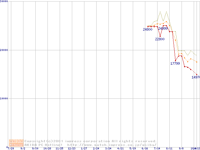 Pentium 4 1.4GHz(423pin)リテールパッケージ(RIMMなし)の価格推移