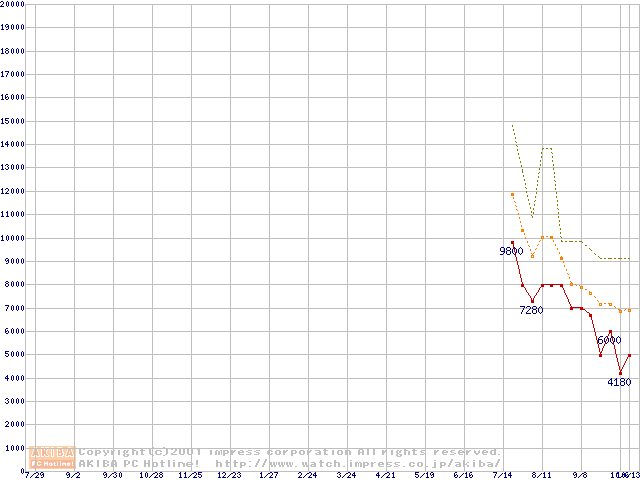 PC133 SDRAM DIMM CasLatency=3 ECC対応 Registeredタイプの最安値推移