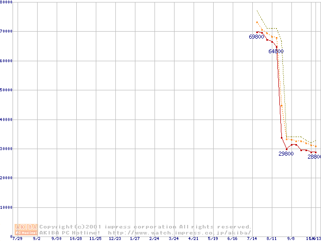 Pentium 4 1.8GHz(423pin)リテールパッケージ(RIMMなし)の価格推移
