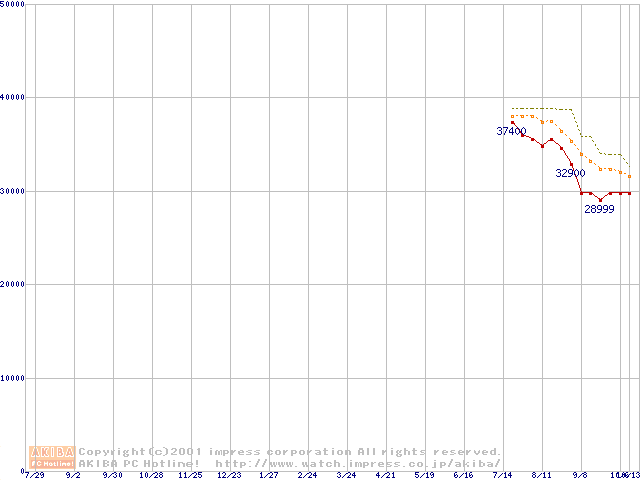 Socket 370 (FC-PGA2,FSB 133MHz,L2 256KB)の最安値推移