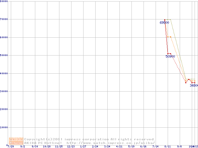 PC100 SDRAM DIMM CasLatency=2 ECC対応 Registeredタイプの最安値推移