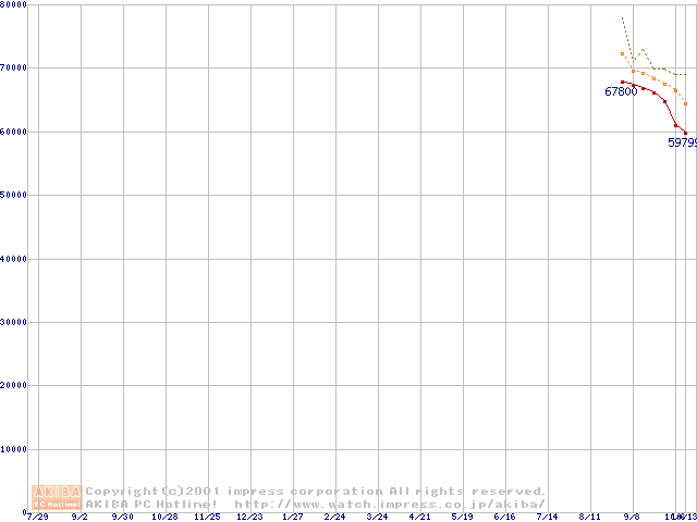 Pentium 4 2GHz(423pin)リテールパッケージ(RIMMなし)の価格推移