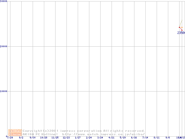 Socket A (Palomino,OPGA,FSB 266MHz,L2 256KB)の最安値推移