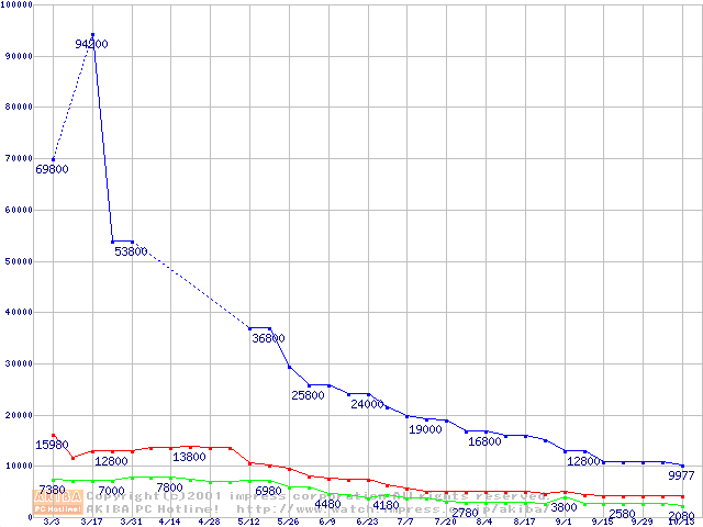 | [↑前グラフ]: | PC133 SDRAM DIMM CasLatency=3の最安値推移 |