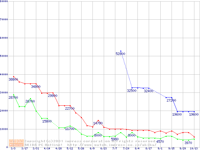 | [↑前グラフ]: | PC2100(DDR266) DDR SDRAM DIMMの最安値推移 |