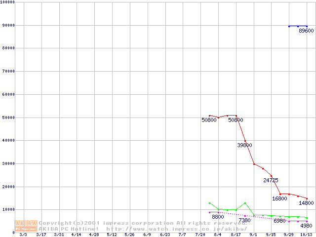 | [↓次グラフ]: | PC800 DRDRAM RIMMの最安値推移 |