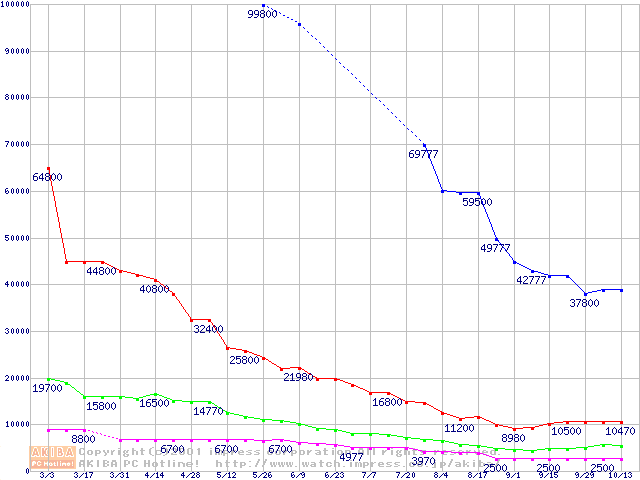| [↓次グラフ]: | PC800 DRDRAM RIMM ECC対応の最安値推移 |