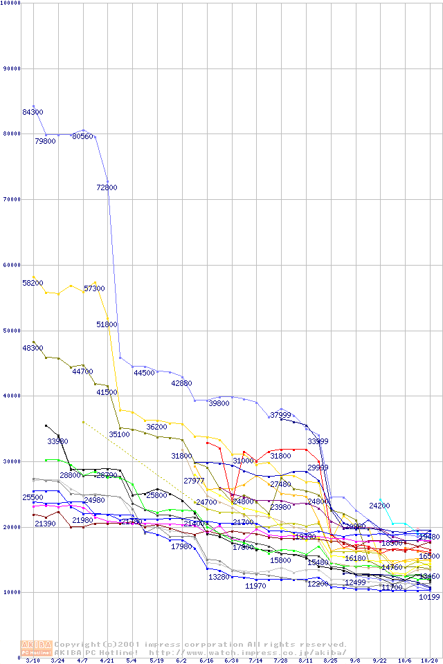 CPU主要製品(最安値1万円~2万円未満)の最安値推移