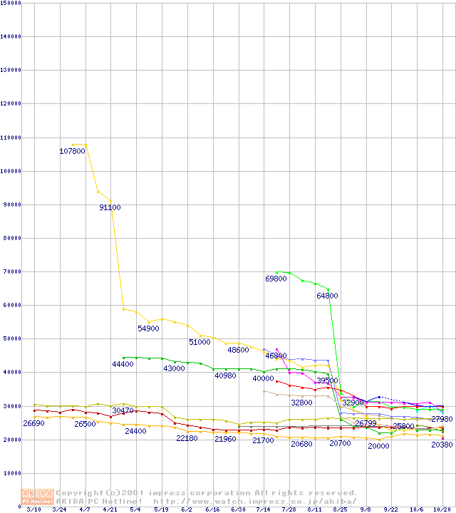 CPU主要製品(最安値2万円~3万円未満)の最安値推移
