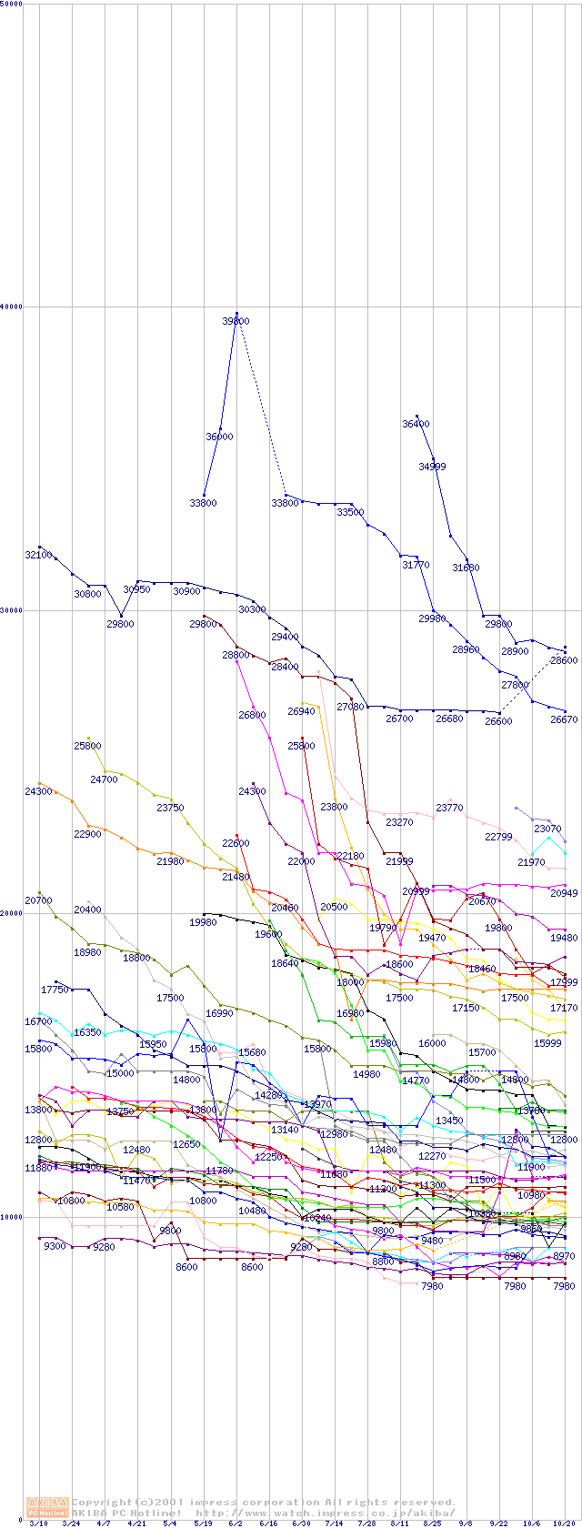 HDD 20GB~30GB未満(5400rpmクラス)の最安値推移