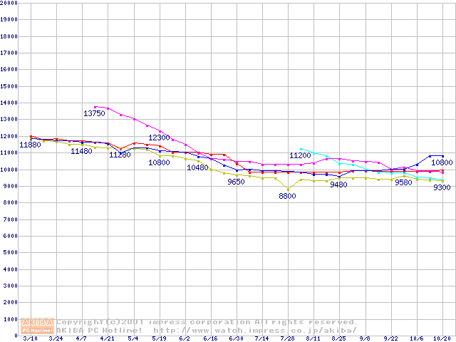 | [↑前グラフ]: | HDD 10GB~20GB未満(7200rpmクラス)の最安値推移 |