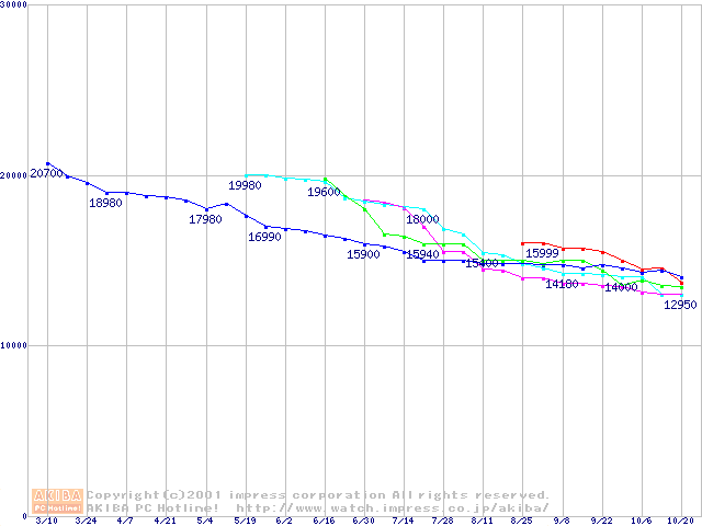 | [↓次グラフ]: | HDD 80GB以上(5400rpmクラス)の最安値推移 |
