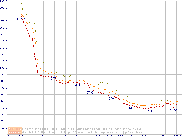 Duron 750MHz バルクの価格推移