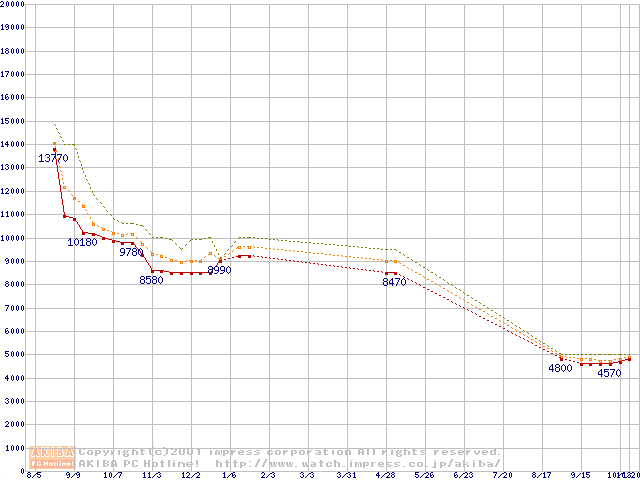 Celeron 600MHz FC-PGA リテールパッケージの価格推移