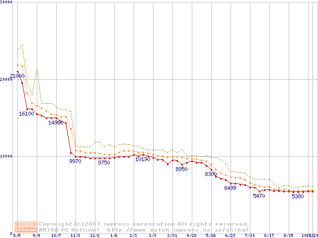 Celeron 700MHz FC-PGA リテールパッケージの価格推移
