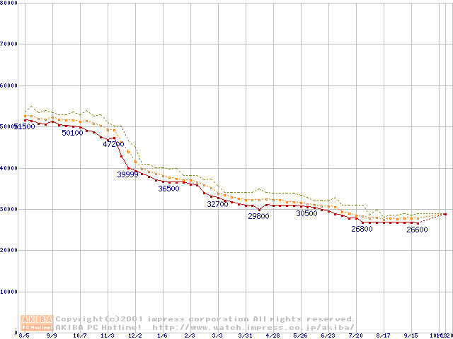 Deskstar 75GXP (7200rpm UltraATA/100 2MB)の最安値推移