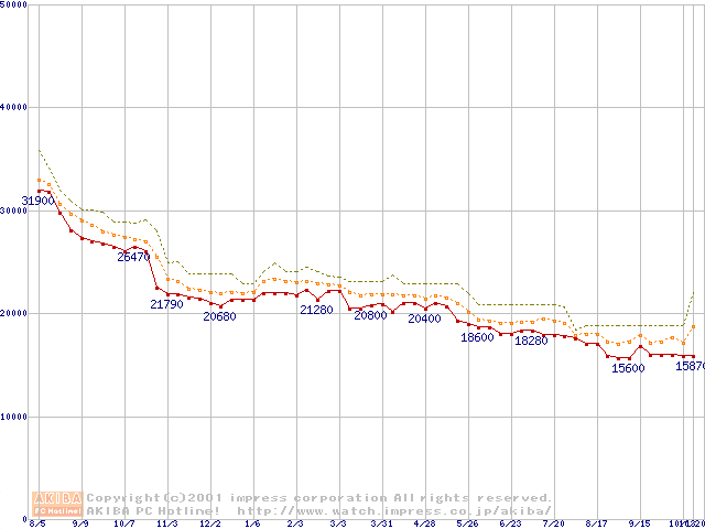 Pentium III 800EBMHz FC-PGA リテールパッケージの価格推移