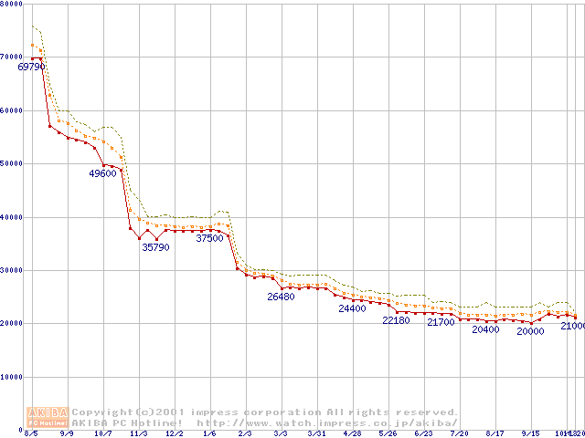 Pentium III 933MHz FC-PGA リテールパッケージの価格推移