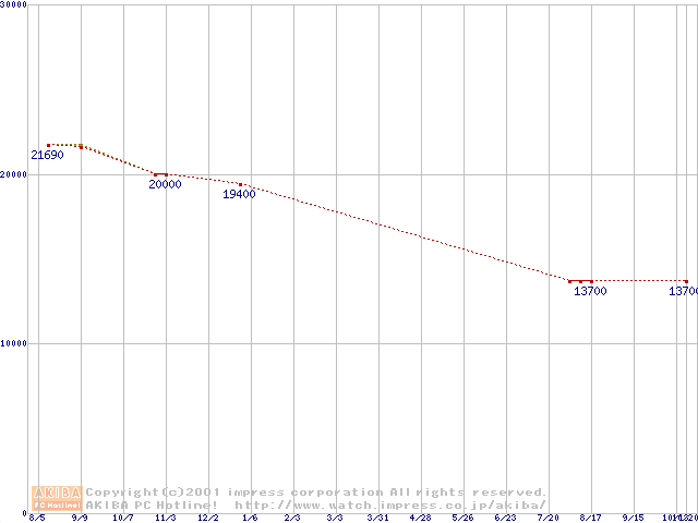 Slot 1 (SECC2,FSB 100MHz,L2 256KB)の最安値推移