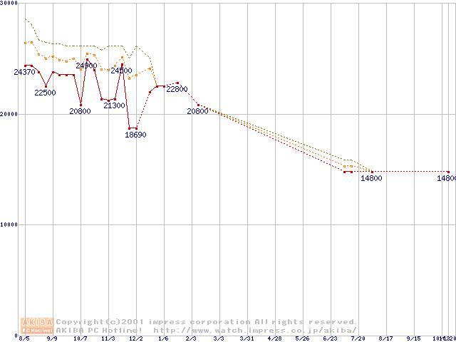 Pentium III 733MHz SECC2 リテールパッケージの価格推移