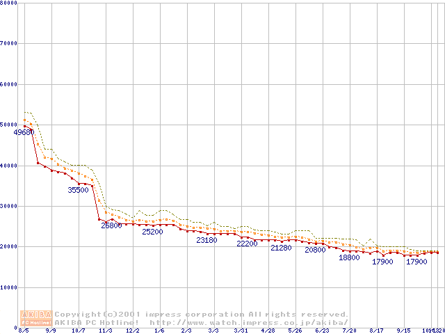 Pentium III 866MHz SECC2 リテールパッケージの価格推移