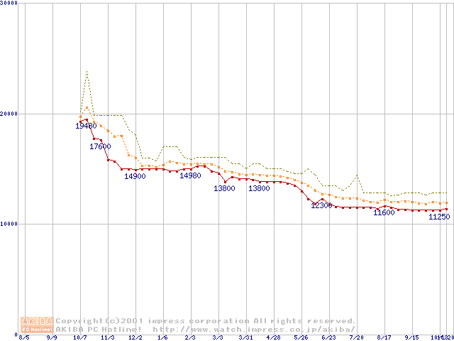 WD Caviar (7200rpm UltraATA/100 20GB/Platter)の最安値推移