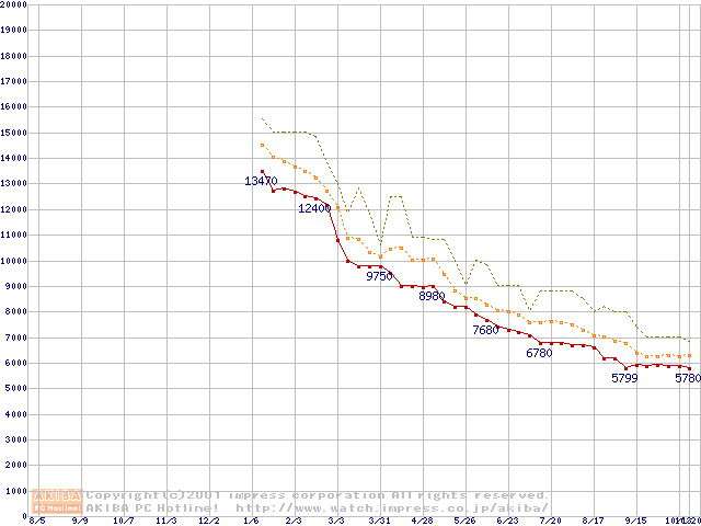 Socket A (Spitfire,PGA,FSB 200MHz,L2 64KB)の最安値推移