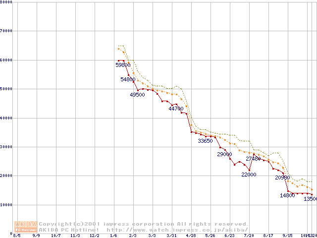 Pentium 4 1.3GHz(423pin)リテールパッケージ(128MB)の価格推移