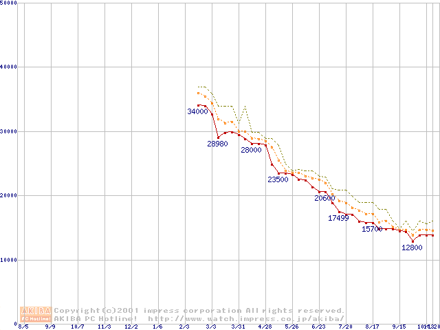 Athlon 1.2GHz(FSB200) (Thunderbird) リテールパッケージの価格推移
