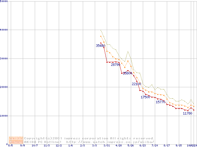 Athlon 1.33GHz(FSB266) (Thunderbird) バルクの価格推移