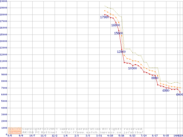 Celeron 850MHz FC-PGA リテールパッケージの価格推移