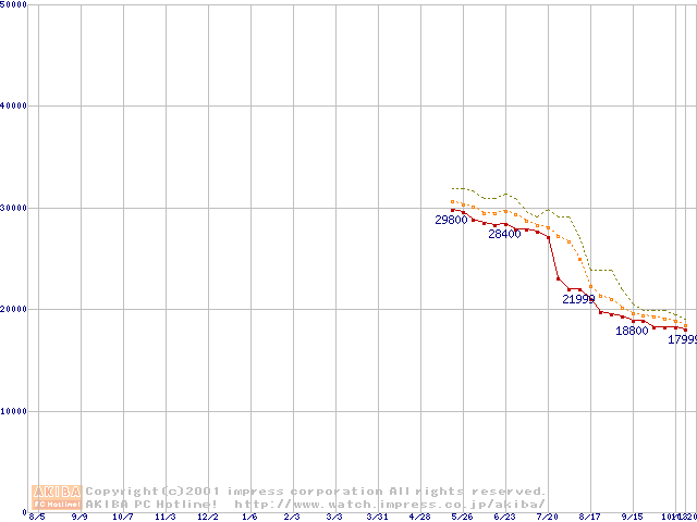 DiamondMax 536DX (5400rpm UltraATA/100 33.3GB/Platter)の最安値推移