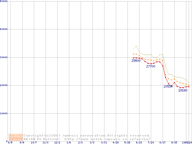 Socket A (Palomino,PGA,FSB 266MHz,L2 256KB)の最安値推移