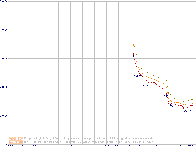 Athlon 1.4GHz(FSB266) (Thunderbird) バルクの価格推移