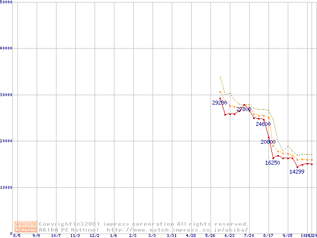 Athlon 1.4GHz(FSB266) (Thunderbird) リテールパッケージの価格推移
