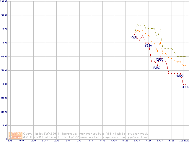 VIA C3 750AMHz リテールパッケージの価格推移