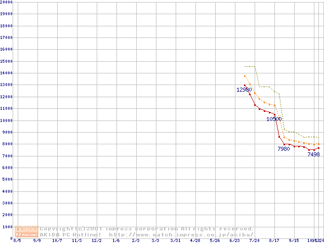 Socket 370 (FC-PGA,FSB 100MHz,L2 128KB)の最安値推移