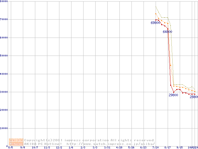 Pentium 4 1.8GHz(423pin)リテールパッケージ(RIMMなし)の価格推移