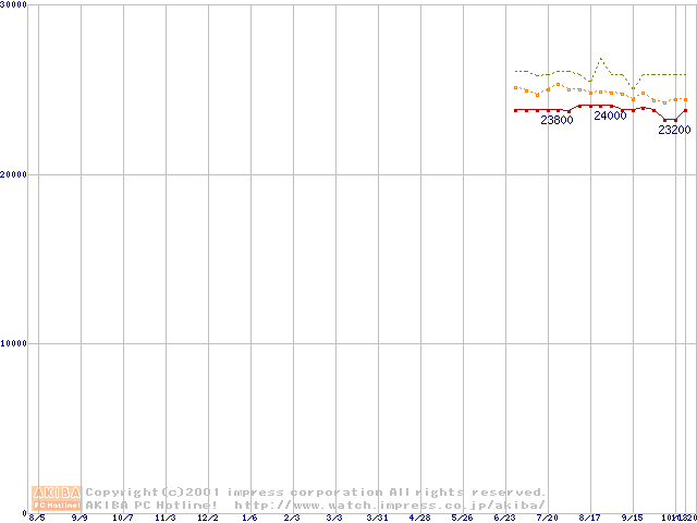 CPU主要製品(最安値2万円~3万円未満)の最安値推移