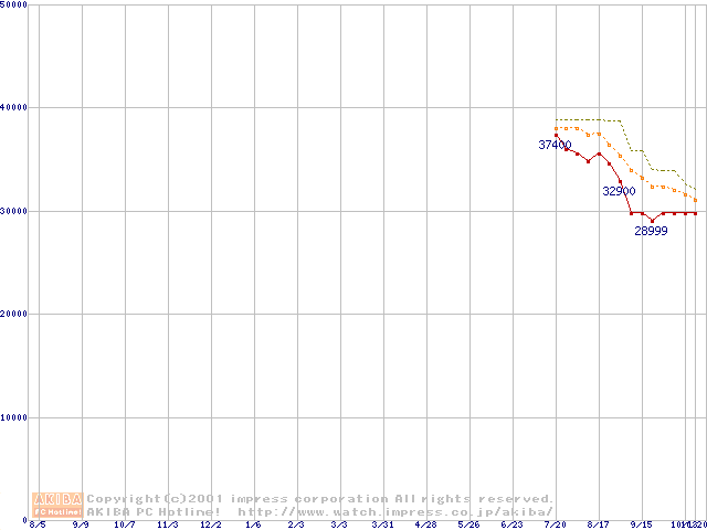 Socket 370 (FC-PGA2,FSB 133MHz,L2 256KB)の最安値推移